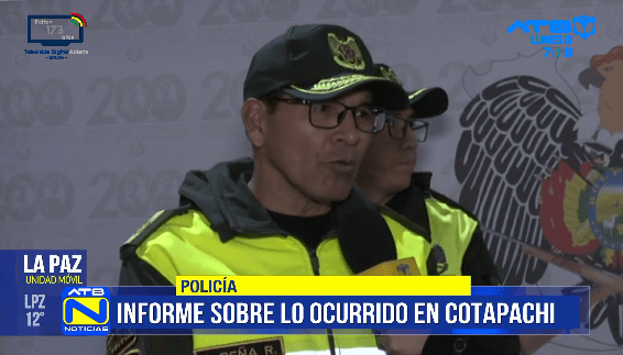 La Paz, 08 de dic 2025 (ATB Digital)-. En el departamento de La Paz, el subcomandante de la Policía Boliviana, Juan Román Peña, informó que se registraron 2 personas fallecidas de sexo masculino, además de 6 pobladores lesionados y 7 servidores públicos heridos por la explosión de dinamitas. También señaló que se aprehendió a dos personas que portaban dinero, un dron, celulares y una movilidad, elementos que están siendo investigados.
