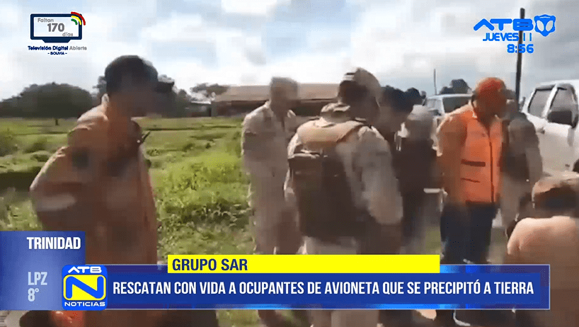 Beni, 11 de dic 2025 (ATB Digital)-. Dos tripulantes de una avioneta fueron rescatados tras un operativo conjunto realizado por el Grupo SAR, la Unidad de Gestión de Riesgos (UGR) y equipos de apoyo, luego de que la aeronave sufriera un incidente en una zona de difícil acceso.