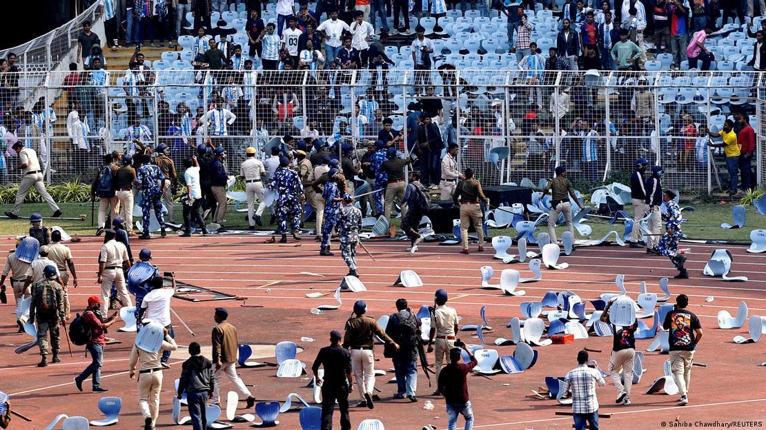 De viaje en el gigante asiático hasta el lunes, el jugador de 38 años, idolatrado en India, fue recibido a lo grande a su llegada al estadio de Bengala Occidental, este sábado por fanáticos exultantes que coreaban su nombre. En la ciudad se ha erigido una estatua de Messi para celebrar su llegada. Horas después, miles de seguidores con camisetas del jugador reunidos en el estadio Salt Lake de Calcuta, en el este del país, se sintieron estafados por la brevedad del acto y se desataron los incidentes.