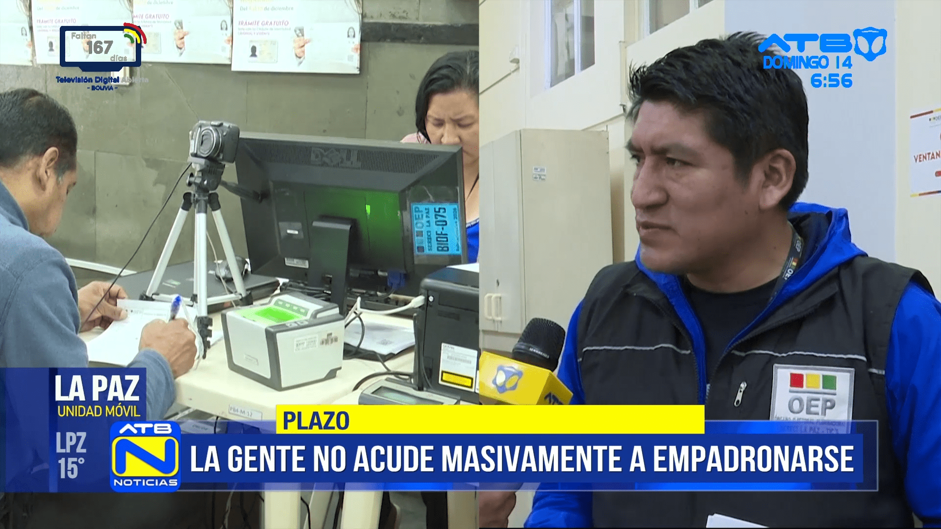 La Paz, 14 de dic 2025 (ATB Digital).- Según el reporte del encargado del Sereci, David Luna, en La Paz funcionan 16 puntos de empadronamiento con horarios extendidos.