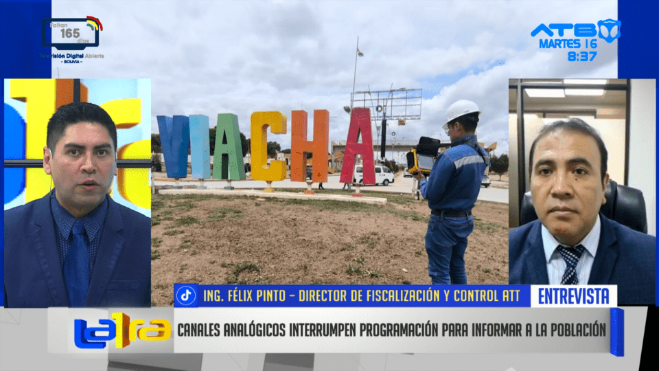 La Paz, 16 de dic 2025 (ATB Digital).- Félix Pinto, director de Fiscalización y Control de ATT, informó que el 30 de mayo de 2026 se realizará el apagón analógico de televisión en La Paz, Cochabamba y Santa Cruz. Esta medida marca la transición de la televisión analógica a la digital. Los canales analógicos interrumpirán su programación para informar a la población, y los hogares con televisores analógicos podrán continuar viendo programación mediante decodificadores.