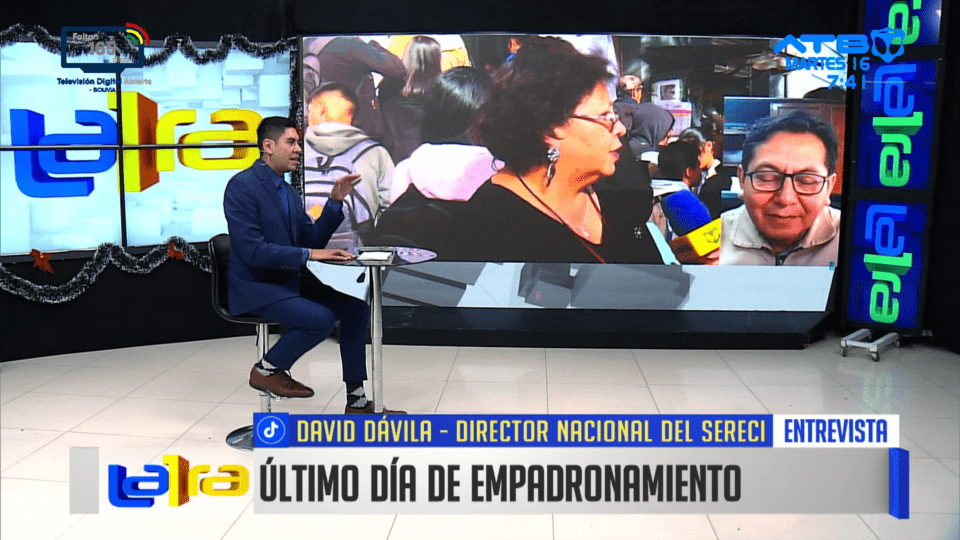 La Paz, 16 de dic 2025 (ATB Digital).- David Dávila, director nacional del Sereci, recordó que este martes es el último día de empadronamiento masivo en Bolivia. La jornada busca registrar a todas las personas que aún no se hayan empadronado, incluyendo a quienes cambiaron de domicilio o cumplieron 18 años, para garantizar su derecho a votar en las próximas elecciones subnacionales.