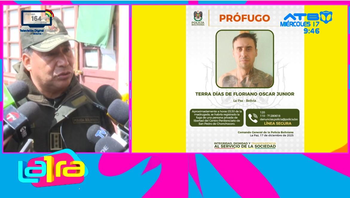 La Paz, 12 de dic 2025 (ATB Digital) .- El director nacional de Seguridad Penitenciaria, Juan Carlos Revollo, reveló que los reos brasileños que fugaron del penal de Chonchocoro, “son considerados de alta peligrosidad”. Además, reportó que “uno de ellos está vinculado como cómplice en un hecho de asesinato, ocurrido recientemente en el penal de Palmasola”.