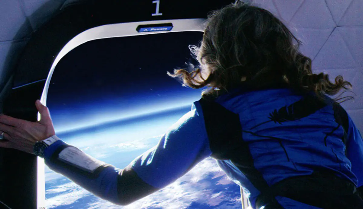 Michaela Benthaus, una ingeniera aeroespacial y de mecatrónica alemana de la Agencia Espacial Europea, fue una de las pasajeras que cruzó la línea de Kármán, el límite entre la atmósfera y el espacio exterior reconocido internacionalmente, durante un vuelo de aproximadamente 10 minutos. Iba acompañada por otras cinco personas.