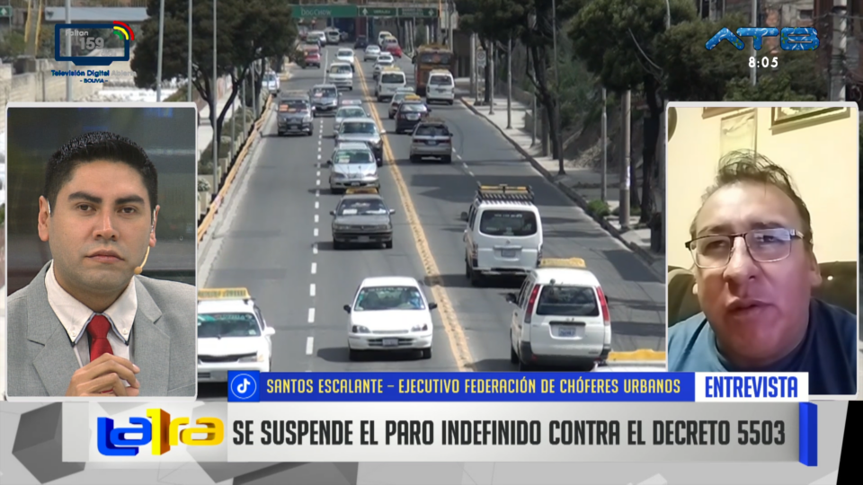 La Paz, 22 de dic 2025 (ATB Digital).- El secretario ejecutivo de la Federación de Choferes Urbanos, Santos Escalante, informó la suspensión del paro indefinido convocado en rechazo al Decreto Supremo 5503, tras el compromiso del Gobierno de convocar a alcaldes y gobernadores para definir el tema de las tarifas. Escalante señaló que el sector continúa negociando los precios de los pasajes, advirtiendo que los estudios de costos no pueden realizarse en una semana y que estos deben basarse en el tipo de cambio oficial del dólar. Asimismo, indicó que persisten dificultades por el alza en los repuestos y la falta de divisas, aunque aseguró que el sector cooperará con el Gobierno mientras continúan las negociaciones.