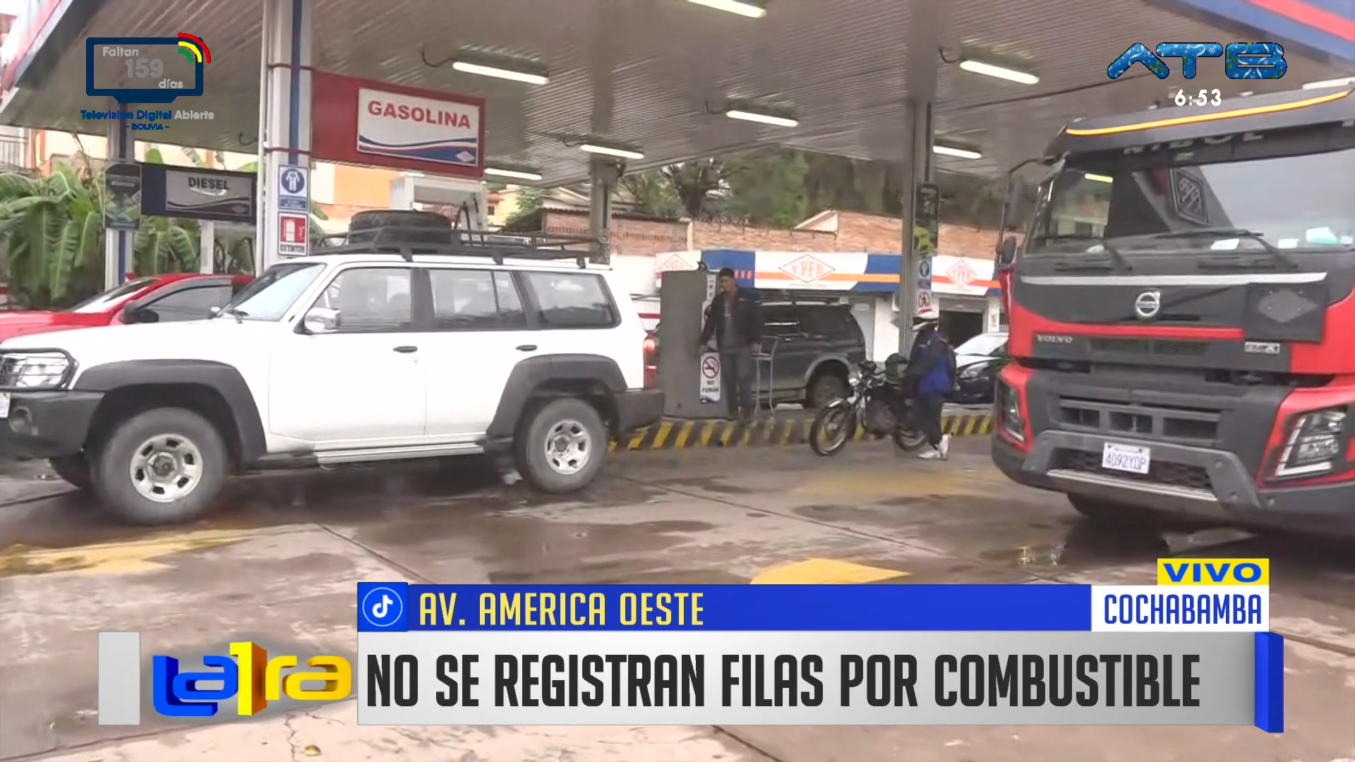 Cochabamba , 22 de dic 2025 (ATB Digital).- En Cochabamba, no se registran filas en las estaciones de servicio y la carga de combustible se realiza con total normalidad, luego de varios días marcados por largas esperas y alta demanda. La situación evidencia una regularización progresiva del suministro en la ciudad.