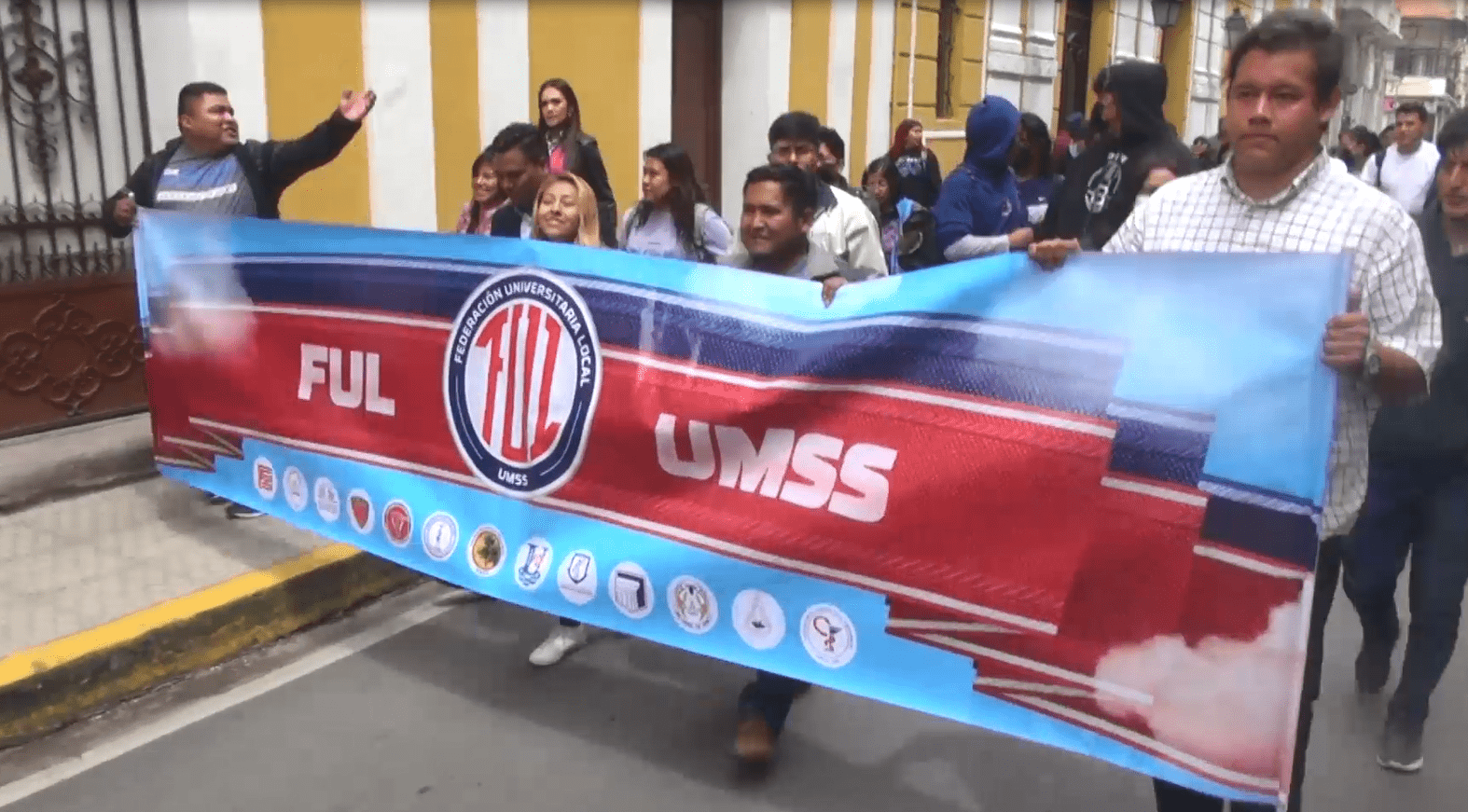 Cochabamba, 22 dic 2025 (ATB Digital) .- Con pancartas y petardos, representantes de la Federación Universitaria Local marcharon hasta la plaza principal para exigir el respeto al pasaje universitario de un boliviano, rechazando cualquier incremento en las tarifas del transporte público.