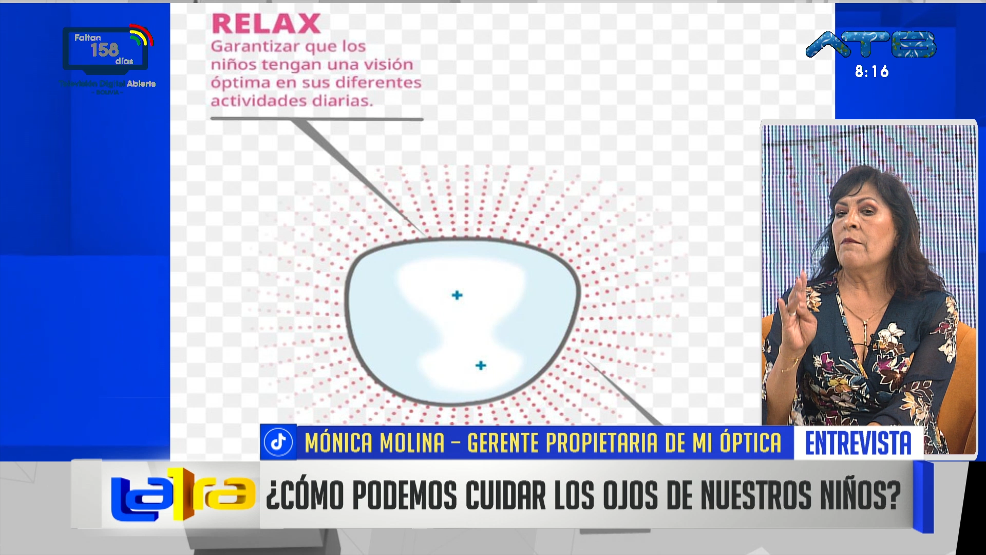 La Paz, 23 de dic 2025 (ATB Digital).- Mónica Molina, gerente propietaria de Mi Óptica, brinda recomendaciones para proteger la visión de los niños. Señala la importancia de revisiones periódicas, limitar el tiempo frente a pantallas, mantener una buena iluminación y fomentar hábitos saludables que prevengan problemas oculares desde temprana edad.