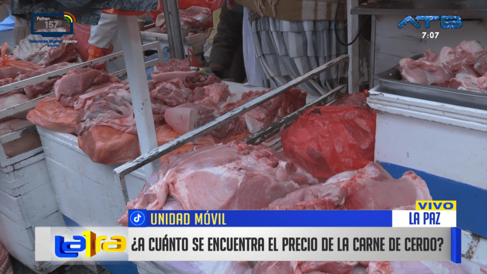 La Paz, 24 de dic 2025 (ATB Digital).- Desde la calle Incachaca, en la ciudad de La Paz, Bolivia, se informa que los precios de la carne de cerdo presentan un leve incremento en comparación con la jornada de ayer. El costo del kilo varía de acuerdo con el tipo de corte, y los comerciantes señalan que el ajuste se registra desde tempranas horas de la mañana.