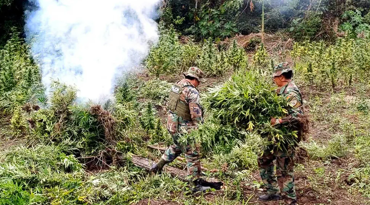 Tras la erradicación de las plantas de marihuana, se procedió a la destrucción e incineración de las 76 toneladas de este arbusto, según el informe de la FELCN.