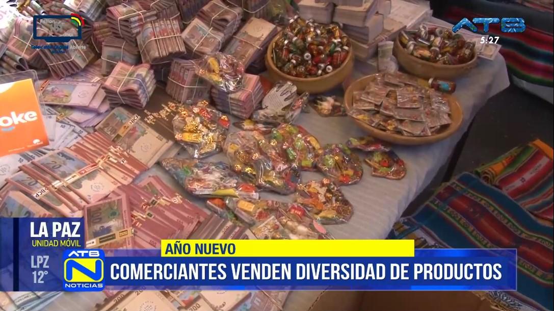 La Paz, 30 de dic 2025 (ATB Digital) .- En la ciudad de La Paz, la avenida Bautista se transforma en un punto de encuentro para que los comerciantes ofrezcan sus productos y la población adquiera las diferentes cábalas para recibir el Año Nuevo en Bolivia.