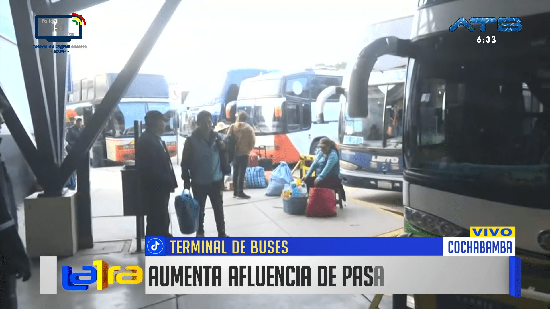Cochabamba , 30 de dic 2025 (ATB Digital).- Desde la Terminal de Buses de Cochabamba, se reporta que las salidas se realizan con total normalidad y sin restricciones, registrándose una gran afluencia de pasajeros. Debido a la demanda, los precios de los pasajes bajaron levemente. Las autoridades recomiendan a la población no aceptar encargos de personas desconocidas, pedir precaución a los conductores y portar los permisos correspondientes en caso de viajar con menores de edad.