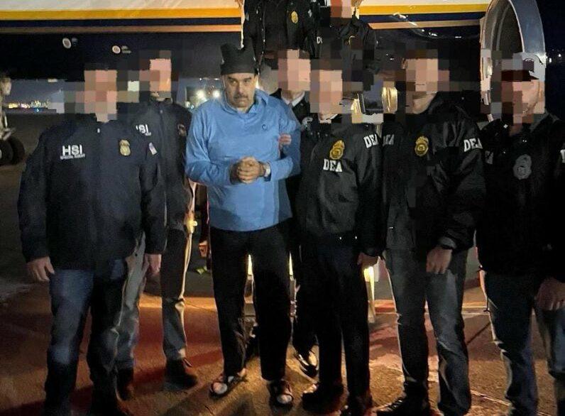 Imágenes publicadas por el gobierno del presidente Donald Trump mostraron a Maduro esposado y en sandalias a su llegada a Nueva York. Mientras lo escoltaban agentes federales en una instalación de la Administración para el Control de Drogas (DEA).