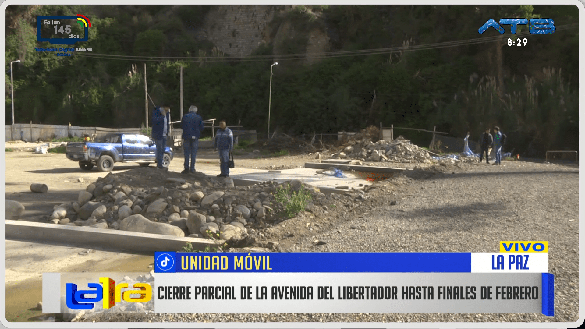 La Paz, 05 de ene 2026 (ATB Digital).- En La Paz, la avenida del Libertador permanecerá parcialmente cerrada hasta finales de febrero debido a trabajos de infraestructura. Herin Ojalvo, jefa de la Unidad de Supervisión de Obras, detalló que las labores buscan mejorar la vialidad y pidió a la población tomar precauciones y planificar sus rutas durante este periodo.