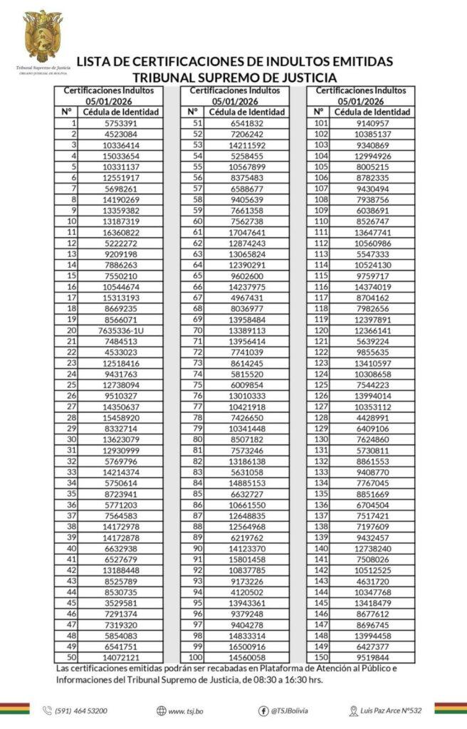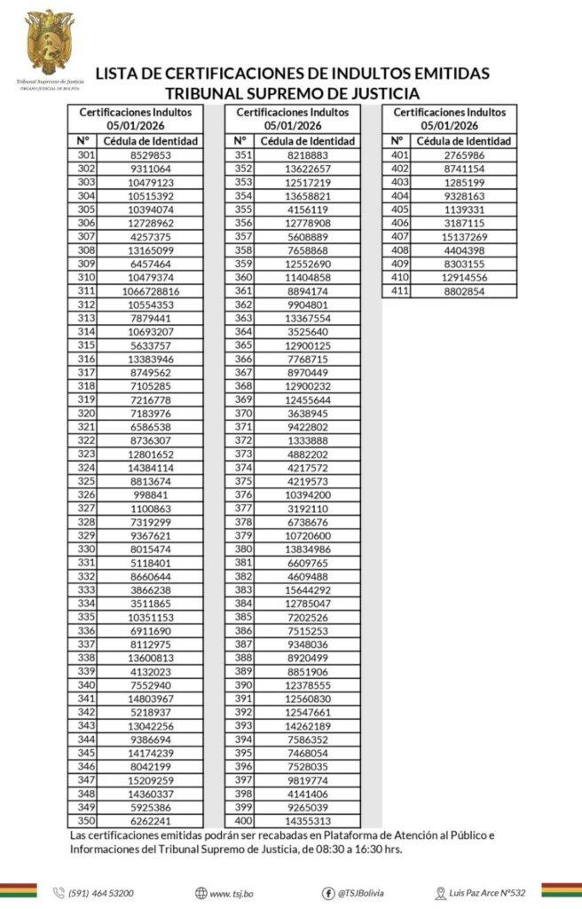 La Paz, 06 de ene 2026 (ATB Digital).- Alrededor de 400 privados de libertad en distintas cárceles del país podrían recuperar su libertad en las próximas horas, una vez que el Tribunal Supremo de Justicia (TSJ) entregue la certificación de antecedentes penales requerida para acceder al Decreto Presidencial de Indulto, informó el director de Régimen Penitenciario de Santa Cruz, Mauricio Romero.