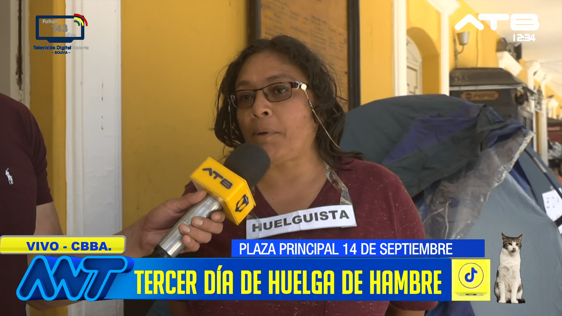 Cochabamba, 07 de ene 2026 (ATB Digital).- En la plaza principal 14 de Septiembre de Cochabamba se instaló una huelga de hambre que agrupa a magisterio, FEJUVE, universitarios y gremiales, como medida de presión para exigir la abrogación del Decreto Supremo 5503.