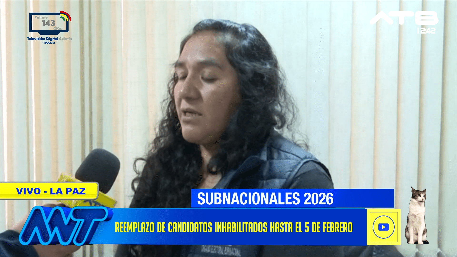 La Paz, 07 de ene 2026 (ATB Digital).- Olga Linares, secretaria de la Cámara del Tribunal Electoral Departamental de La Paz, informó que alrededor de 7.799 ciudadanos fueron inhabilitados por no cumplir con los requisitos necesarios para postularse, en su mayoría por presentar únicamente fotocopias del carnet de identidad. Los candidatos sustituidos podrán ser reemplazados hasta el 5 de febrero.