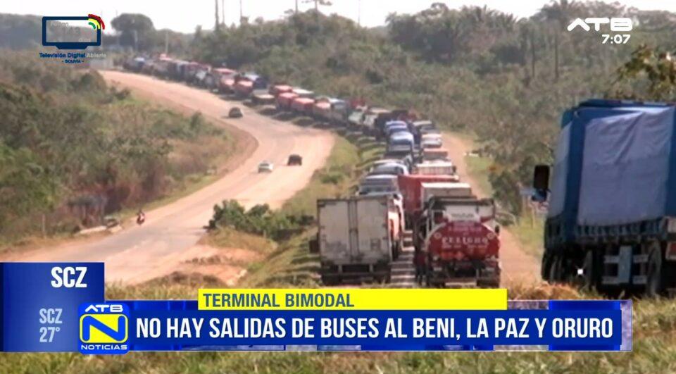 Santa Cruz, 07 de ene 2026 (ATB Digital).- El director de Tránsito de la Terminal Bimodal de Santa Cruz, Rolando Gutiérrez, informó que se suspendieron las salidas de buses hacia La Paz, Oruro y el Beni debido a los bloqueos en las rutas. La autoridad recomendó a la población tomar las precauciones correspondientes para evitar inconvenientes y mantenerse informada antes de programar sus viajes.
