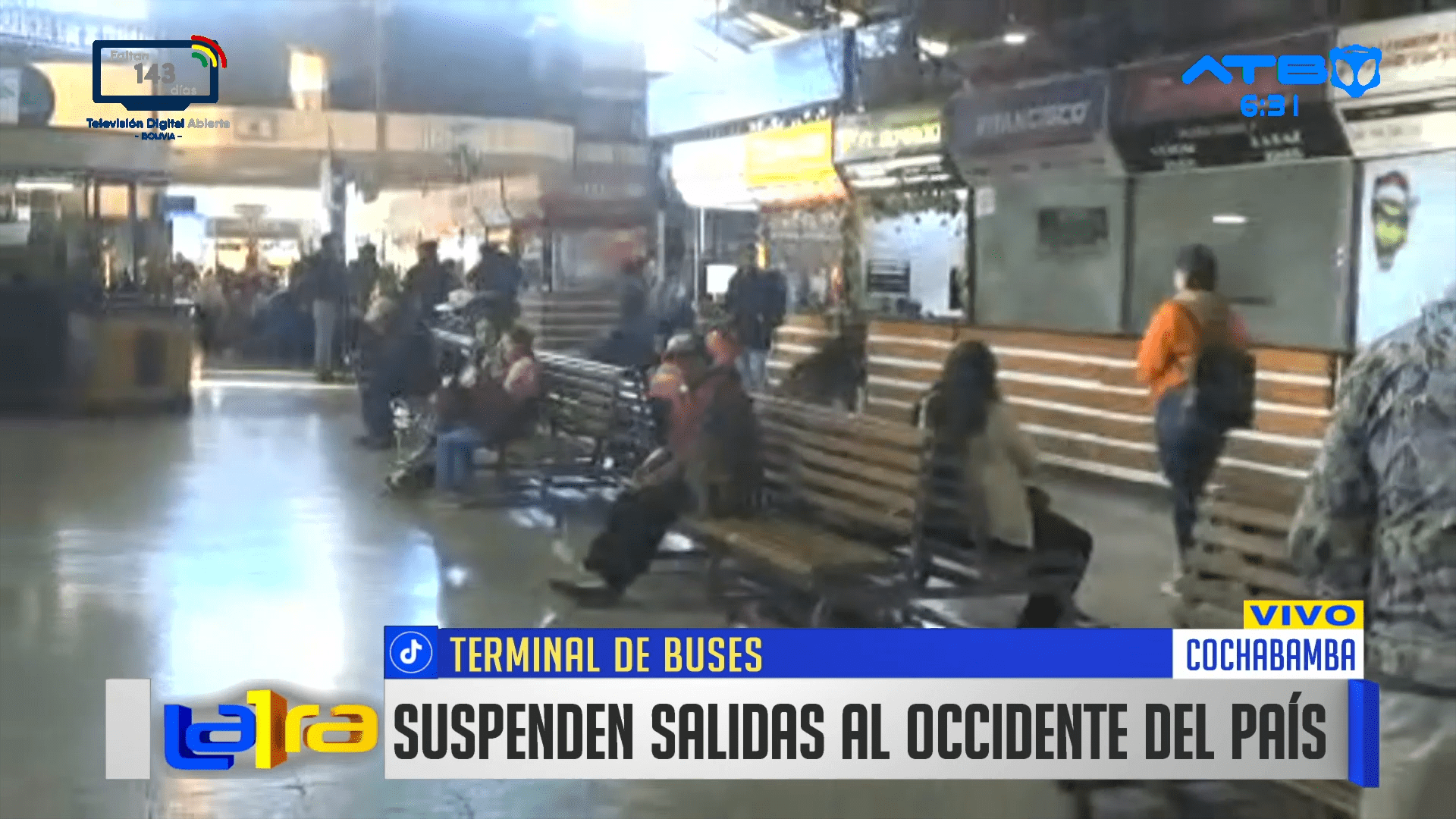 Cochabamba, 07 de ene 2026 (ATB Digital).- Desde la terminal de buses de Cochabamba se informó que las salidas hacia la ciudad de La Paz quedaron suspendidas debido a la presencia de bloqueos en las carreteras. En tanto, los viajes hacia Oruro y hacia el oriente del país se realizan con normalidad; sin embargo, se prevé la posible instalación de nuevos bloqueos hacia el oriente ante amenazas anunciadas.