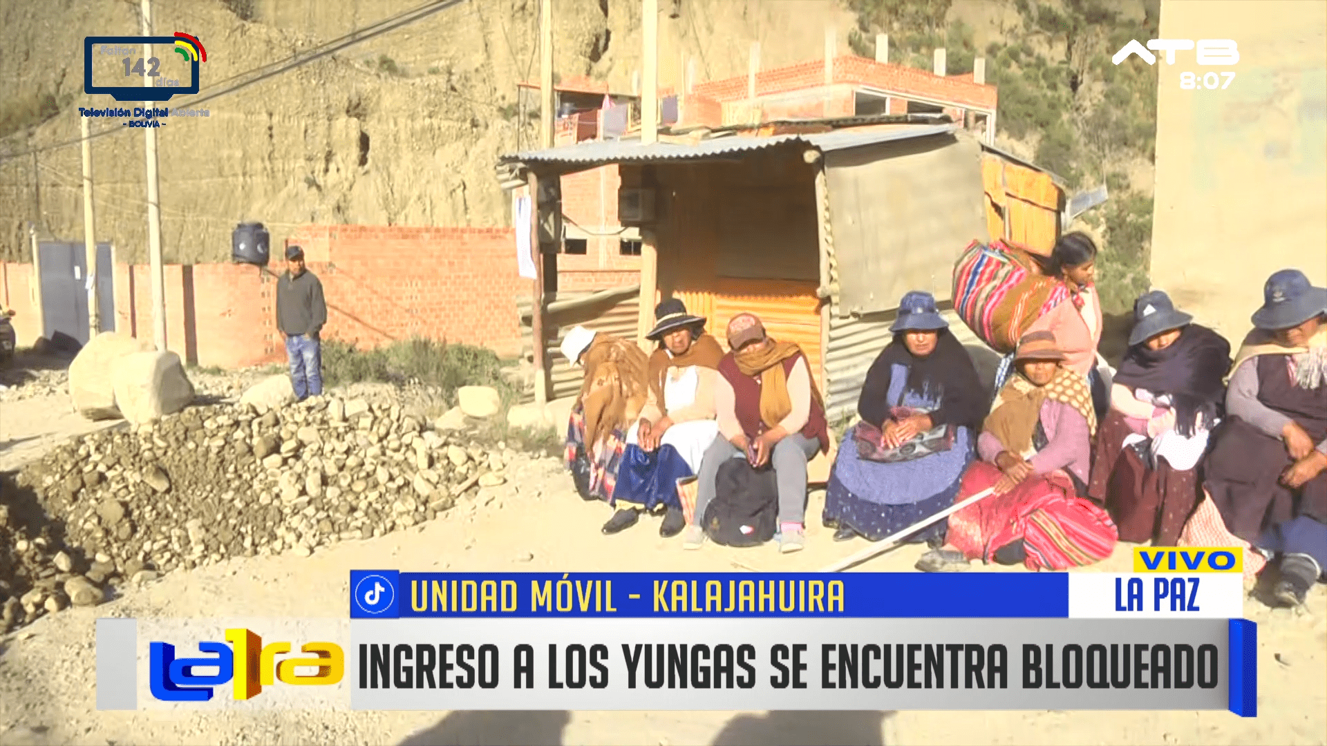 La Paz, 08 de ene 2026 (ATB Digital).- El sector de Kalajahuira registra bloqueos en la carretera, lo que impide el ingreso hacia la región de los Yungas. Las autoridades locales y transportistas recomiendan a la población tomar precauciones y buscar rutas alternas mientras se mantenga la interrupción del tránsito.