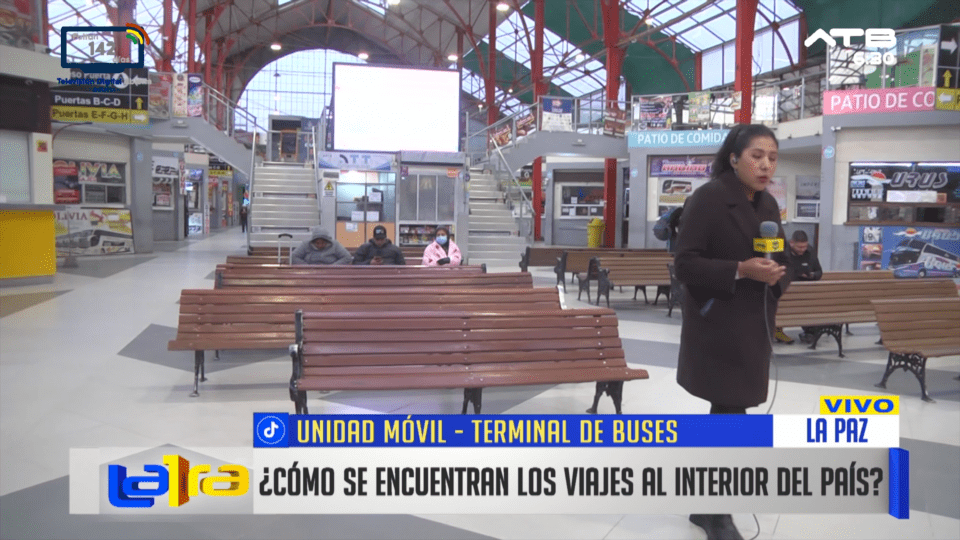 La Paz, 08 de ene 2026 (ATB Digital).- Desde la Terminal de Buses de La Paz se informó que no hay salidas a ningún destino debido a las manifestaciones y bloqueos registrados en distintos puntos del departamento. La vía principal que conecta con Oruro se encuentra totalmente bloqueada, lo que impide la circulación interdepartamental. De igual manera, se suspendieron las salidas hacia Copacabana y Desaguadero por la presencia de bloqueos en esas rutas.