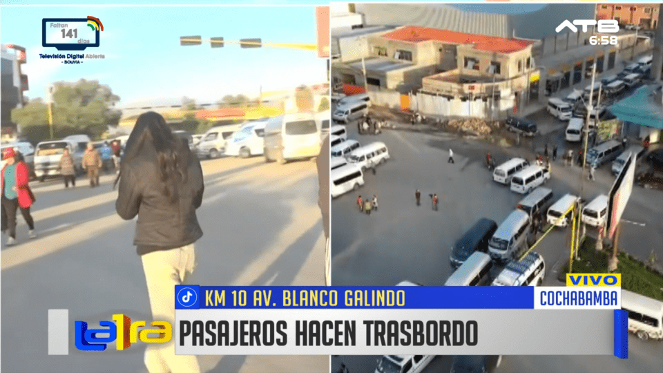 Cochabamba, 09 de ene 2026 (ATB Digital).- Los bloqueos instalados por transportistas en varios sectores están generando serios perjuicios a la población, que se ve obligada a caminar largos tramos o realizar transbordos para llegar a sus destinos. La medida afecta el normal desplazamiento de trabajadores, estudiantes y comerciantes, incrementando los tiempos de traslado y el malestar ciudadano.