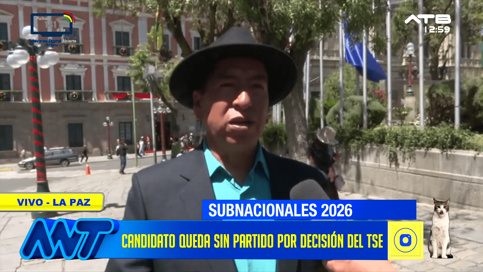 La Paz, 09 de ene 2026 (ATB Digital).- Gualberto Cusi, candidato a la Gobernación de La Paz, expresó su molestia y preocupación tras la decisión del Tribunal Supremo Electoral (TSE) que lo deja sin partido político. Cusi afirmó que esta determinación lo perjudica considerablemente, tomando en cuenta que se produce a estas alturas del proceso electoral.