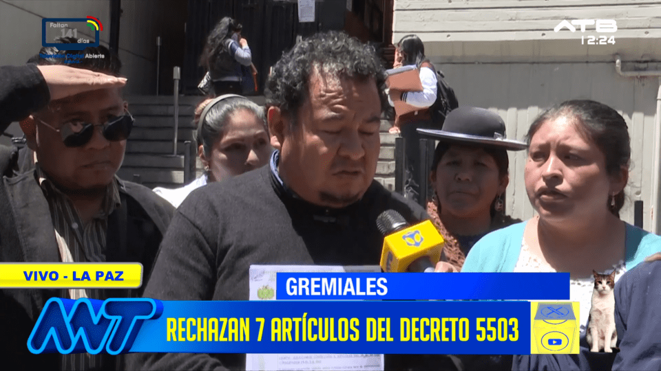 La Paz, 09 de ene 2026 (ATB Digital).- César Gonzales, ejecutivo del sector gremial, informó que su sector observa y rechaza siete artículos del Decreto Supremo 5503, al considerar que estas disposiciones afectan a sus actividades. Los gremiales anunciaron que mantendrán su postura crítica mientras se analizan modificaciones a la normativa.