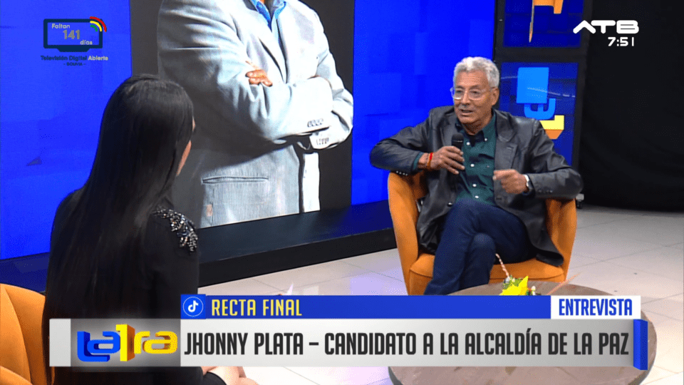 La Paz, 09 de ene 2026 (ATB Digital).- El candidato a la Alcaldía de La Paz, Jhonny Plata, dio a conocer sus principales propuestas, planes de gestión y líneas de trabajo durante un recorrido por distintos sectores de la ciudad, donde expuso su visión para el desarrollo urbano y la atención de las principales demandas vecinales.