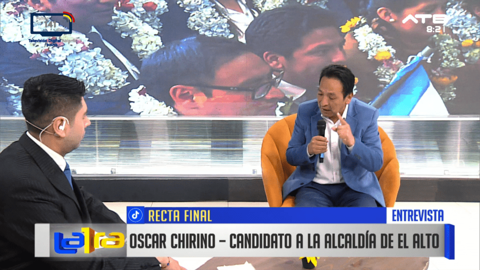 El Alto, 09 de ene 2026 (ATB Digital).- Oscar Chirino, candidato a la alcaldía de El Alto, compartió detalles sobre sus propuestas de gestión, así como el recorrido que realiza por distintos barrios de la ciudad para dar a conocer su plan de trabajo a la ciudadanía.