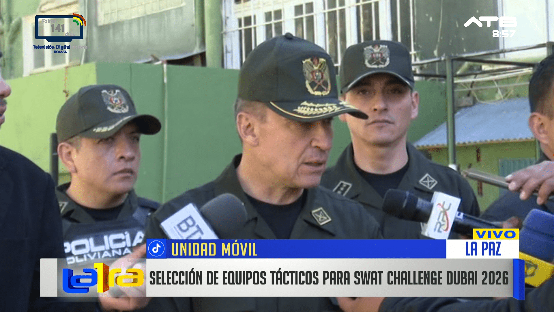 La Paz, 09 de ene 2026 (ATB Digital).- Mirko Antonio Sokol, comandante general de la Policía Boliviana, informó sobre la selección de equipos tácticos que representarán al país en el SWAT Challenge Dubai 2026. Durante la presentación, Sokol también se refirió al caso de Mauricio Aramayo, quien fue acribillado la jornada pasada, reiterando que el hecho se encuentra bajo investigación.