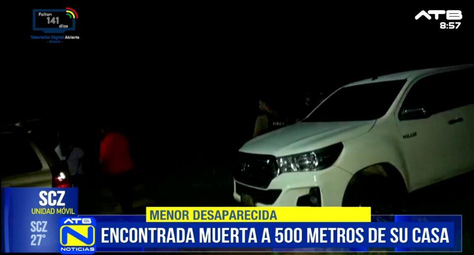 Santa Cruz, 09 de ene 2026 (ATB Digital).- Una menor de 8 años que estaba desaparecida fue encontrada muerta a 500 metros de su domicilio en Santa Cruz. La Policía inició la investigación para esclarecer el caso y dar con los responsables.