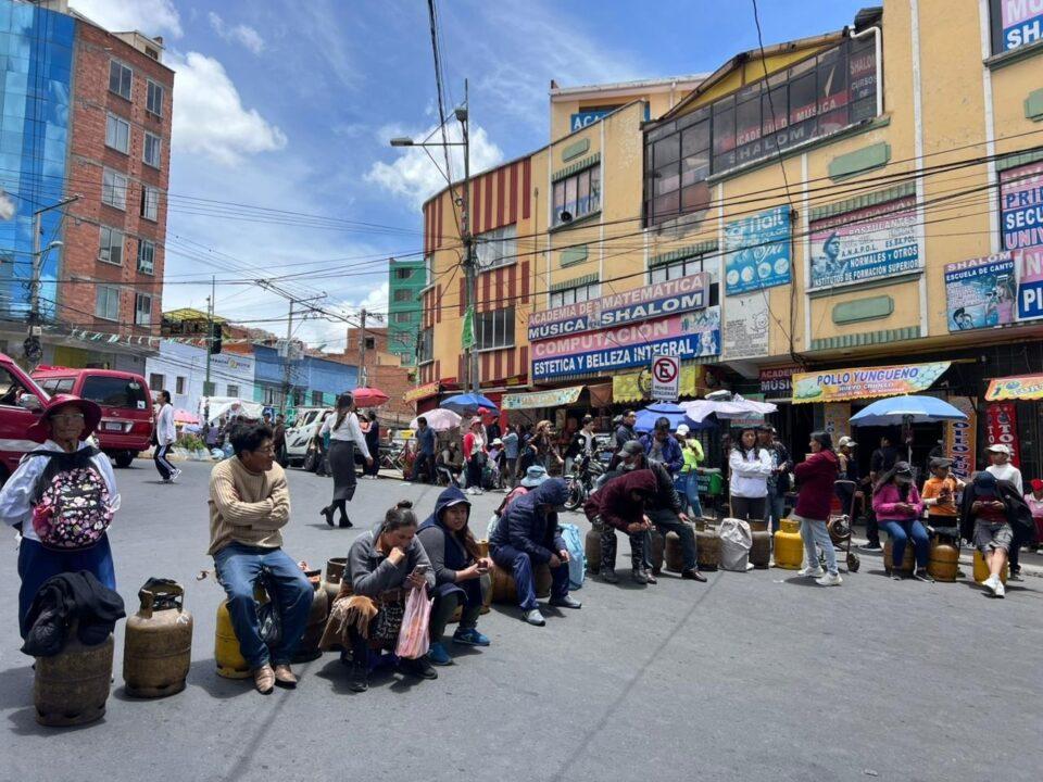 Vecinos bloquean vías con garrafas por escasez de GLP en La Paz