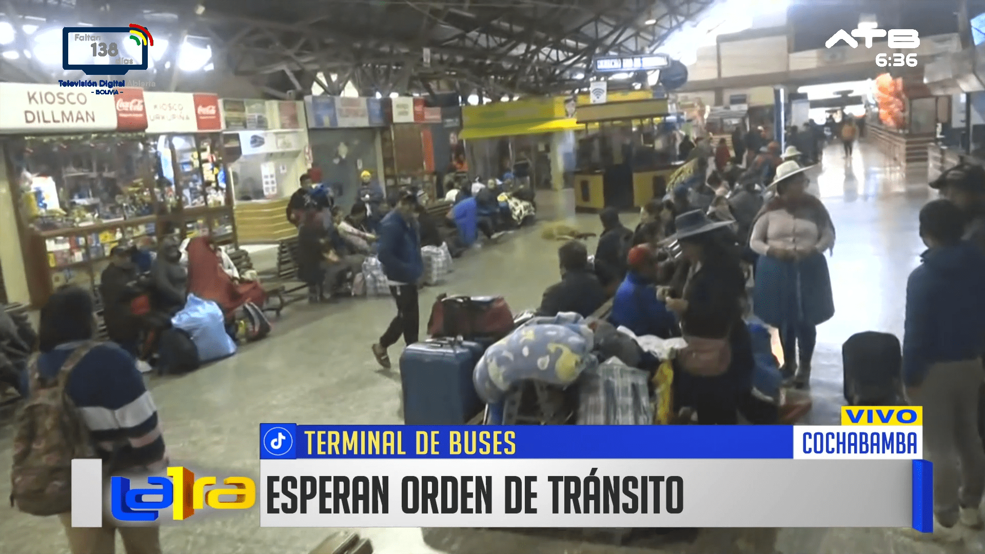 Cochabamba, 12 de ene 2026 (ATB Digital).- Desde la Terminal de Buses de Cochabamba, Tránsito informó que continúan los bloqueos en las carreteras, motivo por el cual no se habilitan salidas ni hacia el oriente ni al occidente del país. Las empresas esperan una instrucción oficial para iniciar la venta de pasajes, mientras la población permanece en la terminal a la espera del restablecimiento de la transitabilidad.