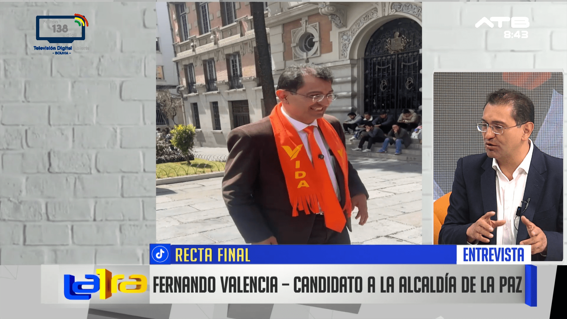 La Paz, 12 de ene 2026 (ATB Digital).- El candidato a la alcaldía paceña, Fernando Valencia, presentó sus principales propuestas e ideas para el desarrollo urbano y social de la ciudad, enfocándose en mejoras de infraestructura, servicios públicos y proyectos para la comunidad.