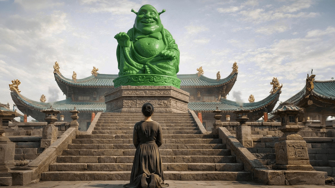 La devota explicó que había comprado la figura en un mercadillo sin reconocer al famoso ogro de las películas. La colocó en un altar doméstico junto a imágenes religiosas y comenzó a rezarle, convencida de que se trataba de algún tipo de versión de Buda de expresión benevolente, hasta que un amigo le reveló la verdadera procedencia del muñeco.