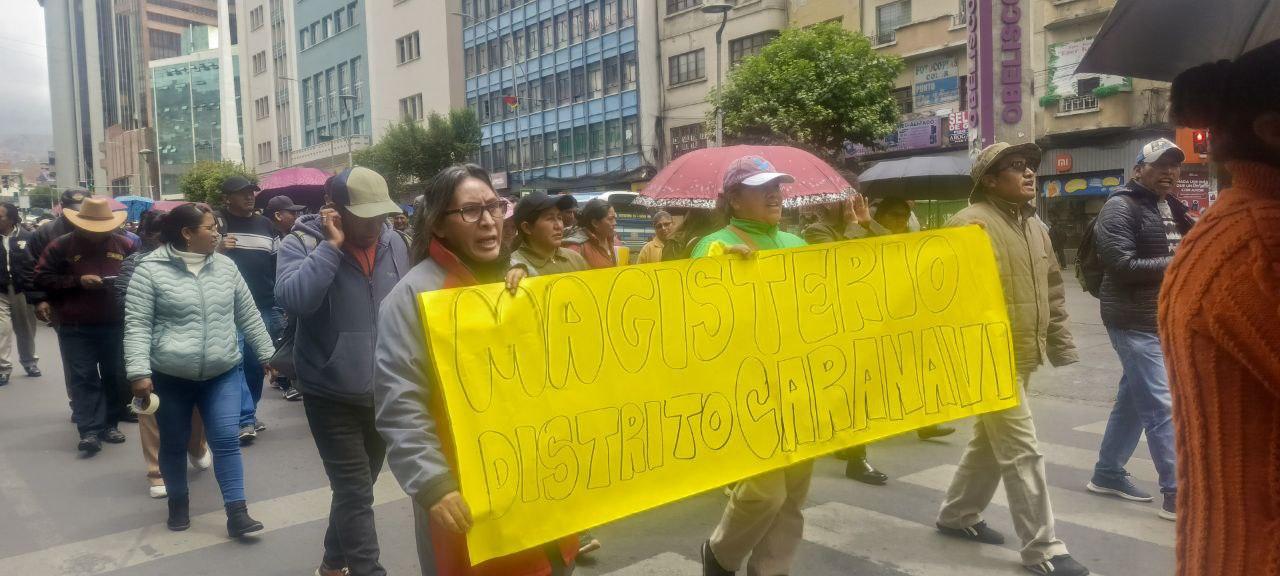 Magisterio se moviliza en el centro paceño y pide nivelación salarial acorde a la canasta familiar