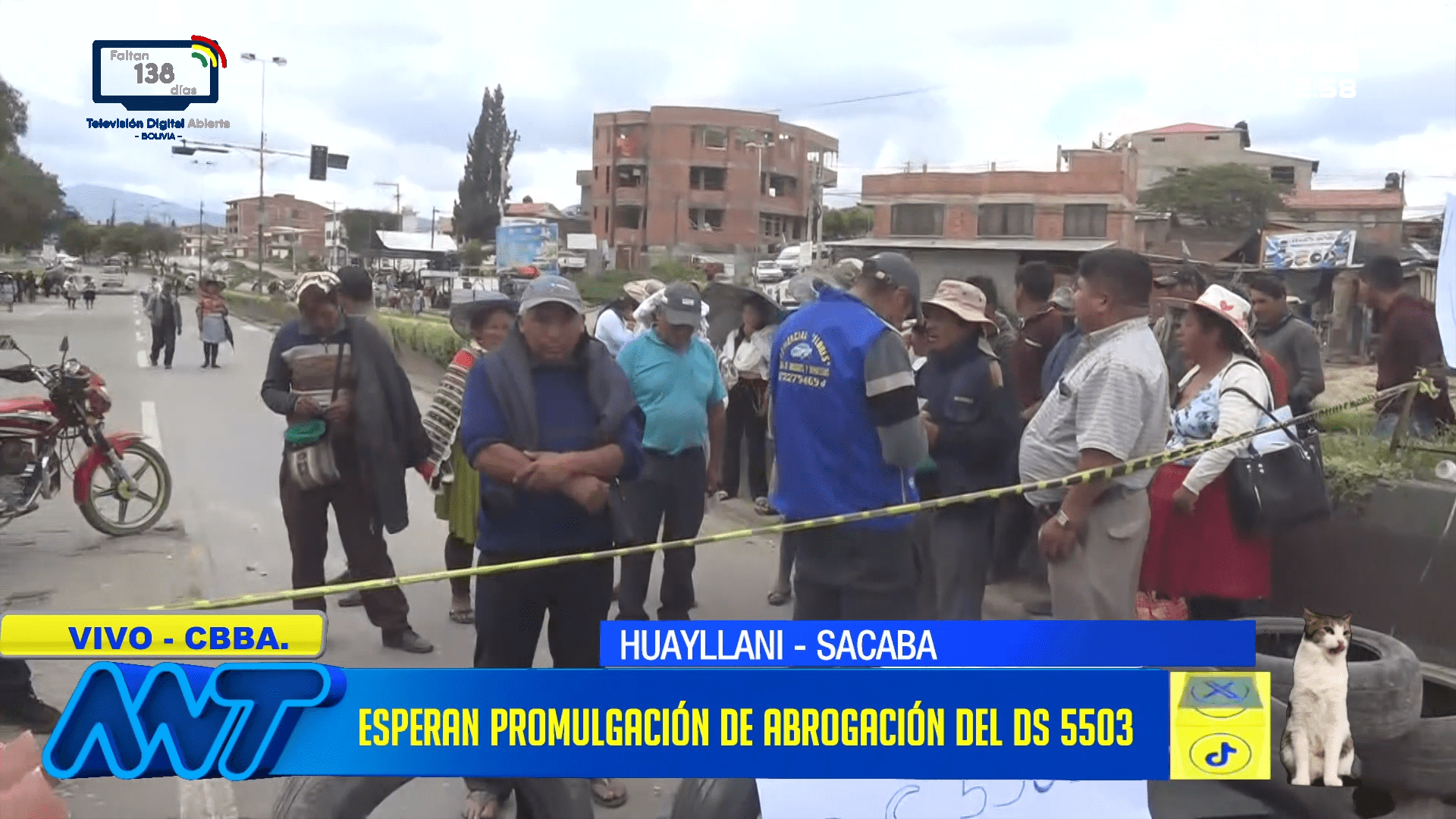 Cochabamba, 12 de ene 2026 (ATB Digital).- Wilson Olivera, dirigente de Morros Sacaba, informó que las organizaciones sociales permanecerán en vigilia permanente en Huayllani, Sacaba, hasta que se publique oficialmente la abrogación del Decreto Supremo 5503. Señalan que no levantarán la medida hasta la promulgación formal de la norma.