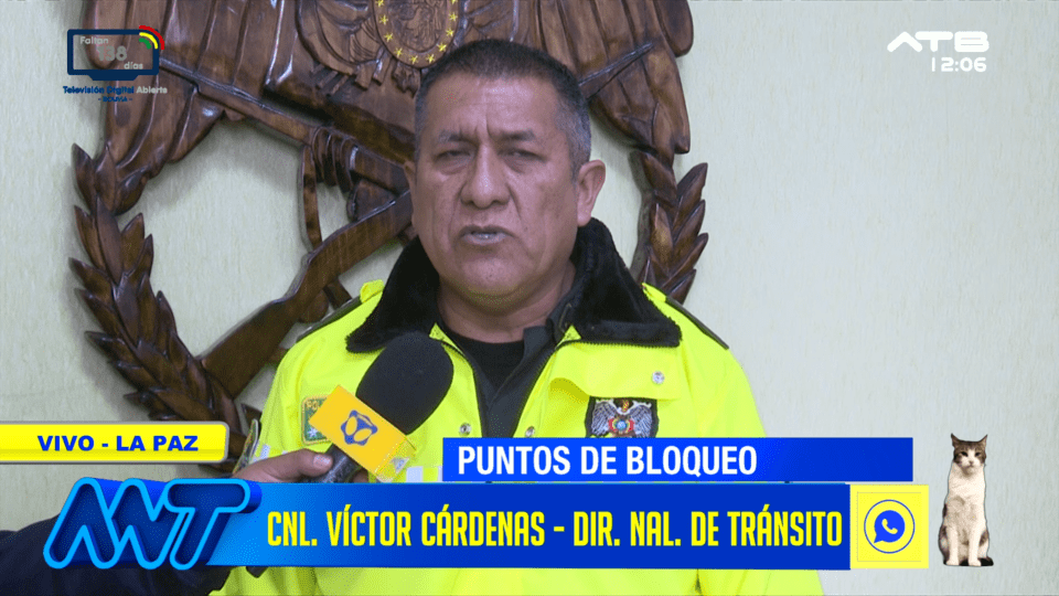 La Paz, 12 de ene 2026 (ATB Digital).- Víctor Hugo Cárdenas, director nacional de Tránsito, informó que hasta esta hora se registran 15 puntos de bloqueo persistentes en el país, concentrados principalmente en el departamento de Cochabamba. Detalló que cuatro departamentos cuentan con vías expeditas, mientras que otros cinco presentan al menos un punto de bloqueo que afecta la transitabilidad.