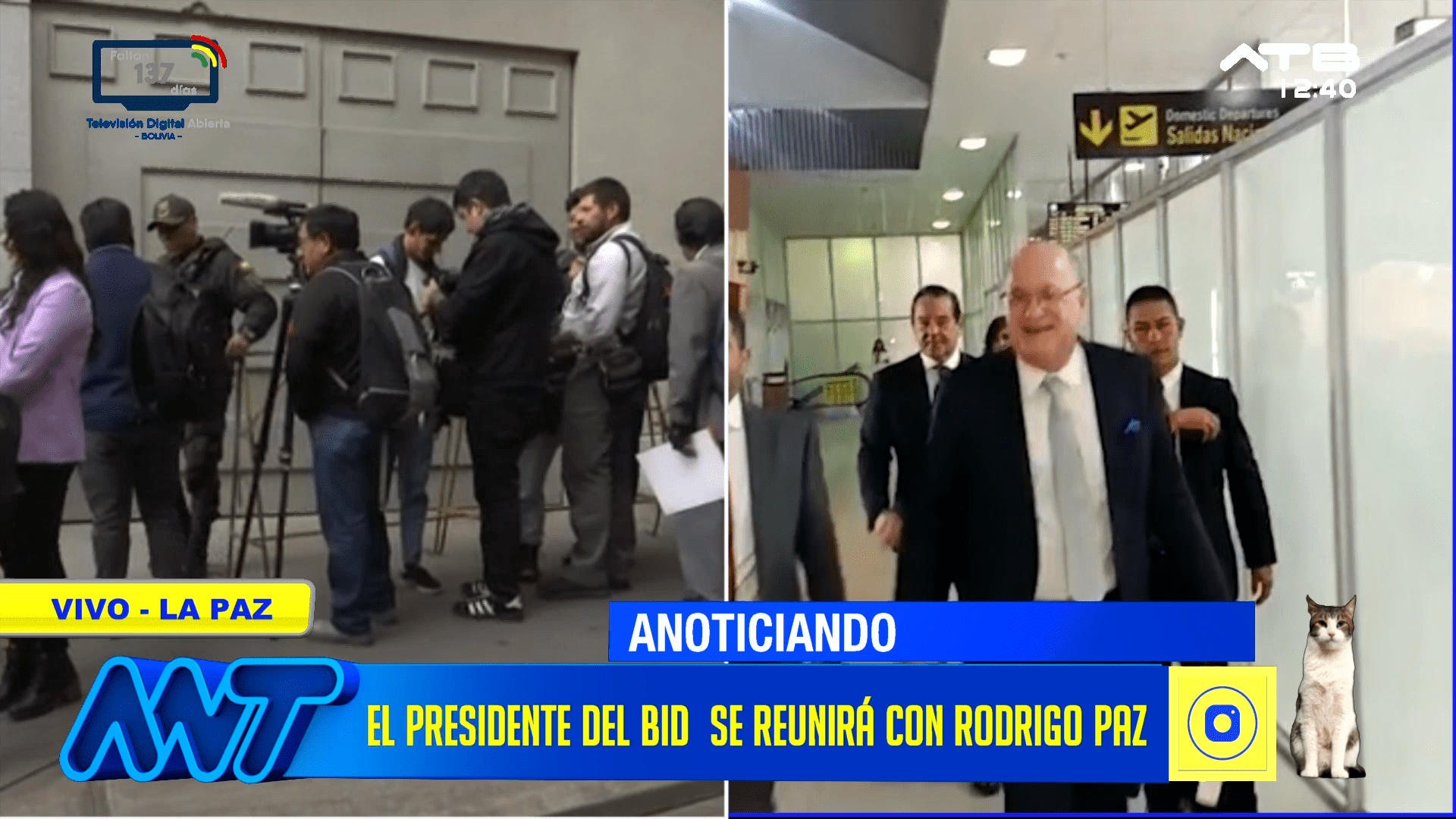 En el marco de su visita oficial a Bolivia, el presidente del Banco Interamericano de Desarrollo (BID) tiene previsto reunirse con Rodrigo Paz en la Casa Grande del Pueblo, encuentro que forma parte de la agenda de actividades del organismo multilateral en el país.