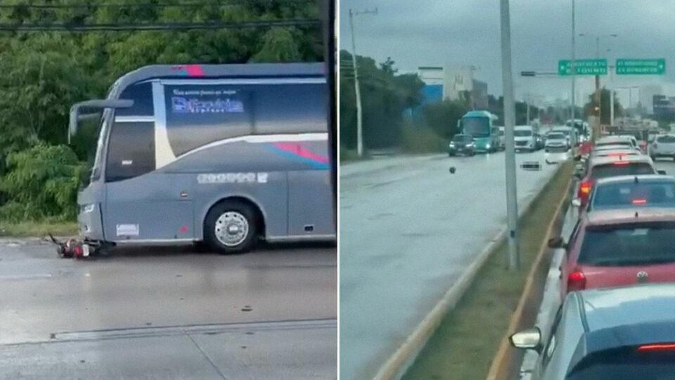 Mundo, 14 de ene 2026 (ATB Digital).- Un autobús de pasajeros impactó a una motocicleta en la que viajaban dos personas en una autopista en Cancún, México. Tras el choque, ambos ocupantes de la moto salieron proyectados contra el pavimento. Un video compartido en las redes muestra a la motocicleta siendo arrastrada varios metros antes de que el autocar se detuviera. El estado de los heridos se reporta como reservado, mientras que el conductor del autobús se dio a la fuga a pie.