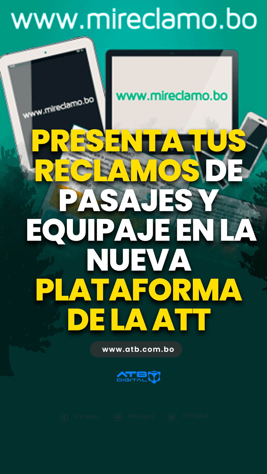 La Paz, 19 de ene 2026 (ATB Digital).-La ATT habilita un portal digital para que los usuarios presenten reclamos por pasajes, equipaje, encomiendas y atención en servicios aéreos, terrestres y ferroviarios. También continúa la atención presencial en oficinas y terminales del país.