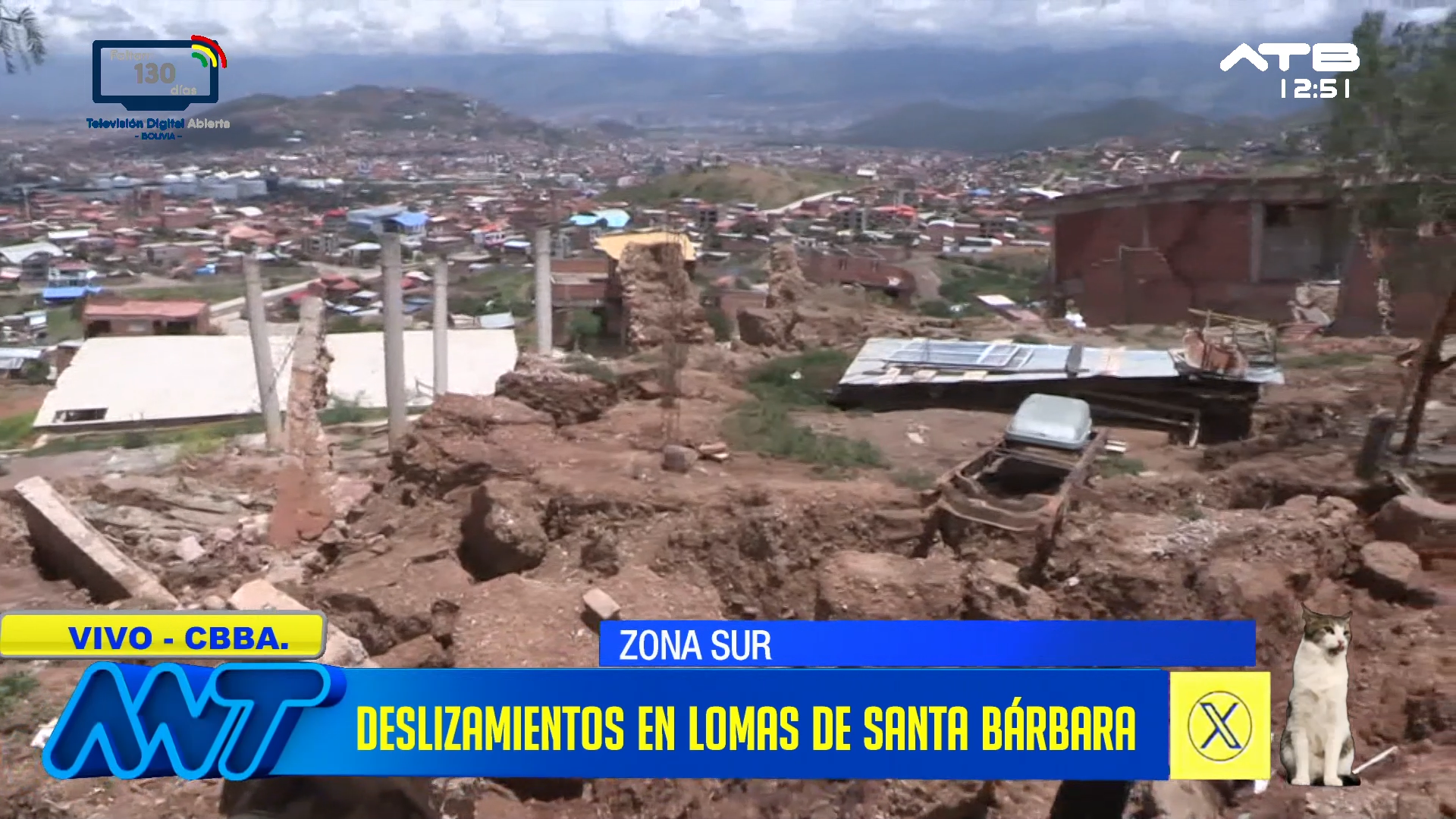 Cochabamba, 20 de ene 2026 (ATB Digital).- Deslizamientos de tierra se registraron en las lomas de Santa Bárbara, en la ciudad de Cochabamba, dejando como saldo más de 10 viviendas derrumbadas. Equipos de emergencia y autoridades municipales se desplazaron a la zona para evaluar los daños y brindar apoyo a las familias afectadas, mientras se mantiene la alerta ante la persistencia de las lluvias.