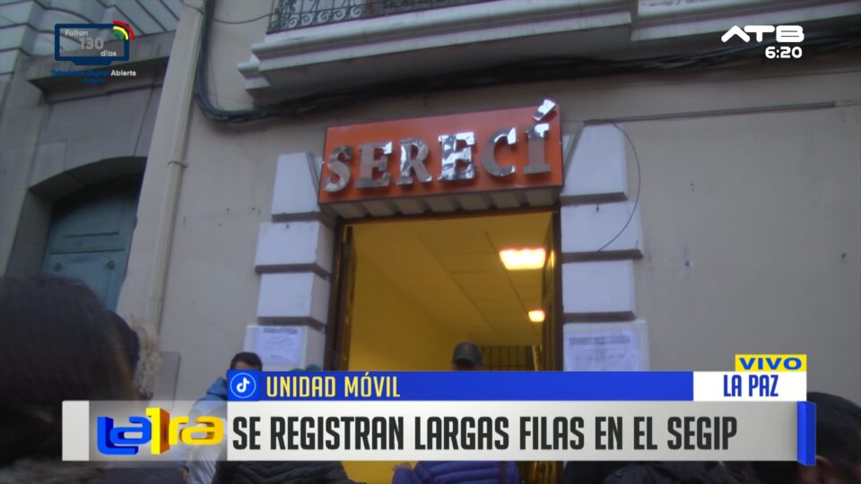 La Paz, 20 de ene 2026 (ATB Digital).- Desde tempranas horas de la mañana se registran extensas filas en puertas del SERECÍ, principalmente por trámites vinculados a las inscripciones escolares, luego de que el proceso iniciara el día de ayer. Padres de familia acudieron masivamente para obtener documentos requeridos para la matrícula de estudiantes.