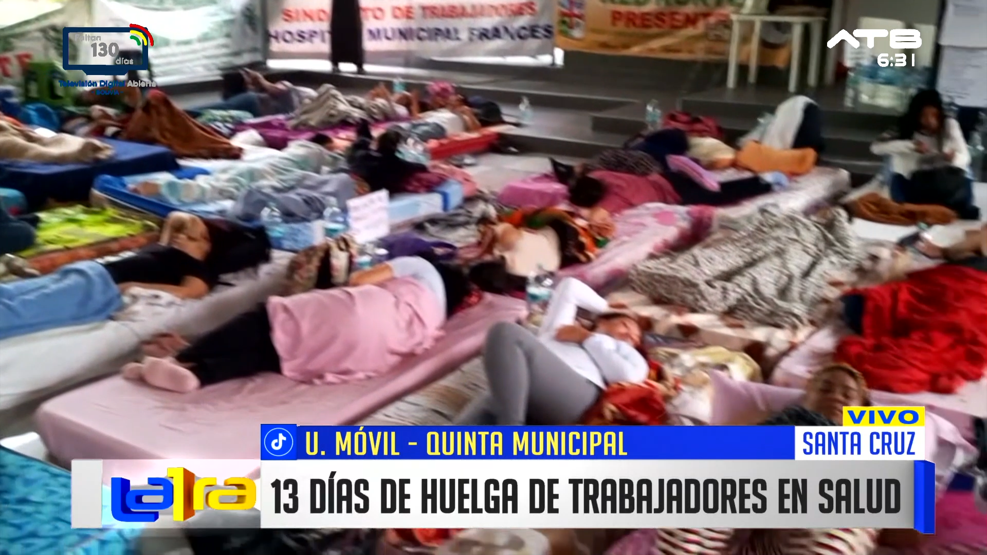 Santa Cruz, 20 de ene 2026 (ATB Digital).- Los trabajadores de salud de la Quinta Municipal, en Santa Cruz, ingresaron al día 13 de huelga en protesta por la falta de pago de salarios adeudados desde noviembre del año pasado. Denuncian que no existe respuesta por parte de la Alcaldía, mientras la población expresa su malestar por la suspensión de servicios y los movilizados advierten con radicalizar las medidas si no se atienden sus demandas.