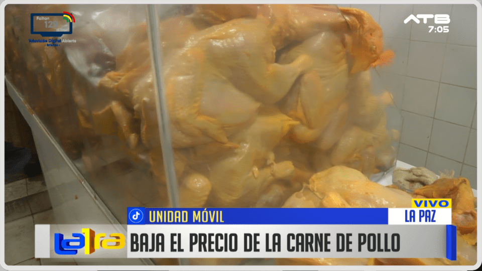 La Paz, 21 de ene 2026 (ATB Digital).- El precio del pollo continúa en descenso y actualmente se comercializa alrededor de Bs 14,80, luego de la normalización del abastecimiento tras los bloqueos. Un pollo entero puede llegar a costar cerca de Bs 40, lo que genera alivio entre los consumidores. En contraste, el precio de la carne de res se mantiene alto, situación que preocupa tanto a comerciantes como a la población, pese a que las medidas de presión ya fueron levantadas.