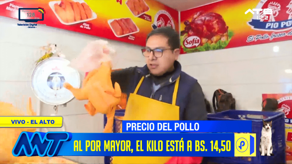 El Alto, 22 de ene 2026 (ATB Digital).- El precio del pollo continúa en descenso en la ciudad de El Alto. Según comerciantes, la carne de pollo al por mayor se comercializa en Bs 14,50, mientras que al por menor alcanza los Bs 15,50. Un pollo grande llega a costar aproximadamente Bs 41, generando alivio en la economía de las familias alteñas.
