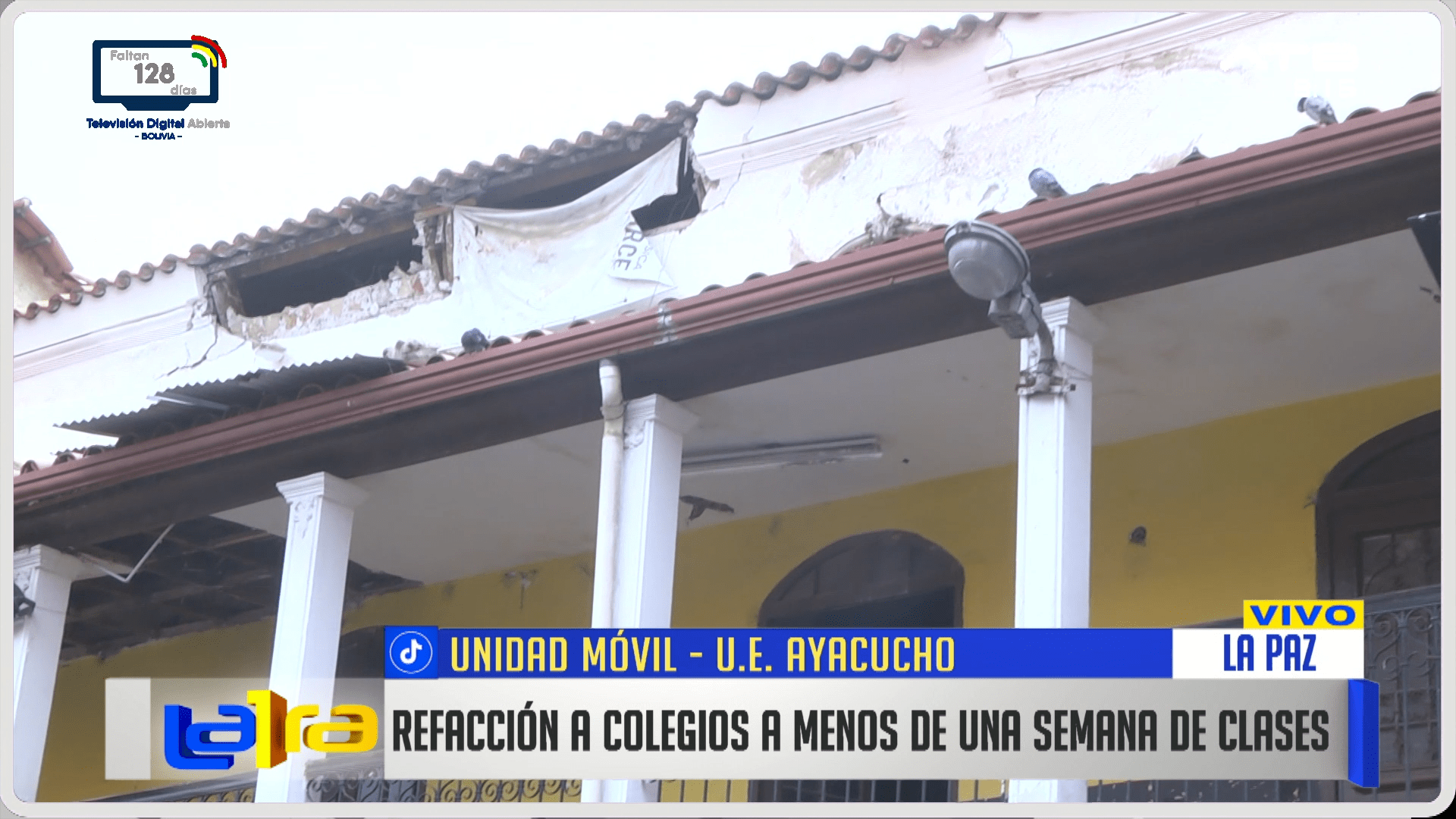 La Paz, 22 de ene 2026 (ATB Digital).- A menos de una semana del retorno a clases, se realizan trabajos de refacción en el colegio Ayacucho, una de las instituciones más antiguas de La Paz, donde se intervienen diversas instancias afectadas por humedad y deterioro, con el objetivo de garantizar un inicio seguro del año escolar.