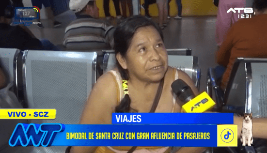 Santa Cruz, 23 de ene 2026 (ATB Digital).- En la Terminal Bimodal de Santa Cruz, se registra una gran afluencia de personas debido al feriado largo que se vive en el país. Decenas de familias acudieron desde tempranas horas para trasladarse a diferentes puntos de la ciudad y del interior, mientras esperan abordar los buses hacia sus destinos. Algunos usuarios señalaron que el precio de los pasajes se incrementó en ciertos casos.