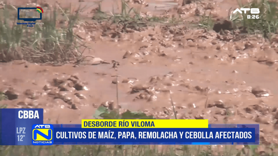 Cochabamba, 23 de ene 2026 (ATB Digital).– El desborde del río Viloma, en el municipio de Sipe Sipe, provocó daños en cultivos de papa, remolacha, cebolla, pimentón y repollo durante la madrugada de este viernes 23 de enero. Las autoridades municipales realizan la cuantificación de pérdidas para gestionar apoyo en favor de los comunarios afectados.